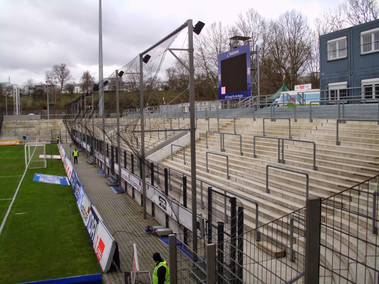 Diesmal kein Schnee oder Regen, dafür aber Eiseskälte macht diesen Fußballnachmittag nicht gerade zum Honigschlecken. Das Stadion am Bornheimer Hang ("Frankfurter Volksbank Stadion") liegt im Osten der Stadt, inmitten vertäumter Schrebergärten und unweit der neuen Europäischen Zentralbank und ist ein ganz hübsches Kleinststadion für 12.500 Zuschauer, das aber an diesem Sonntag nicht einmal zu einem Viertel voll wird. 3.065 Fans (darunter rund 50 aus Ingolstadt) verlieren sich hier und sehen sich die Heimpleite der Schwarz-Blauen an.