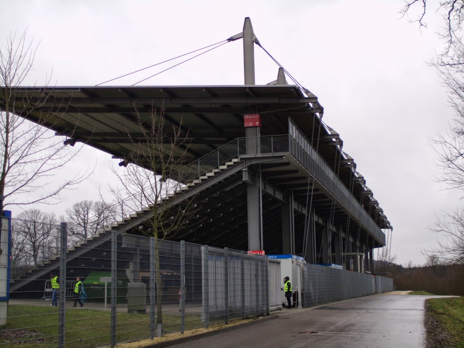 Die "Scholz Arena" ist ein Fleckerlteppich an Provinzstadion, dass es ärger nicht mehr geht. Große Haupt-, mickrigste Gegen- und gleichzeitig VIP-Tribüne, nicht überdachte Gästefan- und lediglich provisorisch angelegte Fantribüne gegenüber. Dadurch hat das Stadion zwar durchaus Charme, für Stimmung ist es aber nicht zu gebrauchen, schon gar nicht, wenn - so wie am heutigen Abend - lediglich 5.200 Zuschauer das Stadion nicht mal zur Hälfte füllen. Der seit der Ankunft am späteren Nachmittag anhaltende Dauerregen hat den Rasen an manchen Ecken in eine Schlammlandschaft (Bild12) verwandelt, was dann wiederum das lange Zeit sehr lahme Spiel beider Mannschaften erklärt. Bochum geht allerdings früh in Führung und kann diese sogar bis in die Pause halten, ehe gleich nach Wiederanpfiff das erste Tor der Gastgeber (die übrigens, wie den meisten eh bekannt sein dürfte von Ralph Hasenhüttl trainiert werden) gelingt. Faktisch im Gegenzug geht die Ruhrpott-Mannschaft allerdings wieder in Führung, Aalen braucht danach lange, um den letztlich verdienten Punkt noch zu retten.